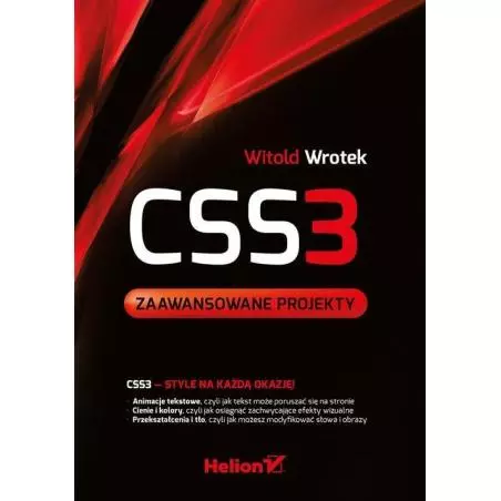 CSS3 — style na każdą okazję! Animacje tekstowe, czyli jak tekst może poruszać się na stronie Cienie i kolory, czyli jak osiągnąć zachwycające efekty wizualne Przekształcenia i tło, czyli jak możesz modyfikować słowa i obrazy Kaskadowe arkusze stylów towarzyszą twórcom stron internetowych już od dwudziestu lat. W tym czasie zdołały