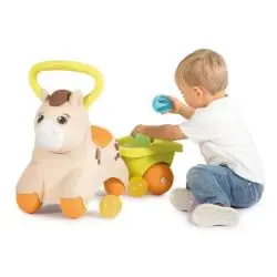 Jeździk Smoby Pony Ride-On Kucyk to idealna pierwsza pojazdowa zabawka dla najmłodszych. Uroczy kucyk o zaokrąglonych kształtach wspiera rozwój motoryki, zachęca do ruchu i pomaga maluchom stawiać pierwsze kroki. Dzięki antypoślizgowemu uchwytowi rodzice mogą asekurować dziecko w trakcie nauki jazdy.