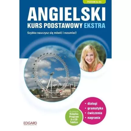 Angielski Kurs podstawowy EKSTRA WYDANIE: - 190 minut nagrań - tylko rodowici Brytyjczycy, - przystępnie objaśniona gramatyka, - ćwiczenia z odpowiedziami, - ilustrowane ciekawostki, - sekcje dla ambitnych, - przejrzyste tabele gramatyczne. Angielski Kurs podstawowy EKSTRA WYDANIE przeznaczony jest dla osób początkujących, oraz wszystkich, którzy