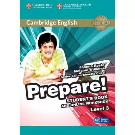Prepare! is a lively 7-level general English course with comprehensive Cambridge English for Schools exam preparation integrated throughout. This flexible course brings together all the tools and technology you expect to get the results you need. Whether teaching general English or focusing on exams, Prepare! leaves you and your students genuinely ready for what comes next: real Cambridge English exams, or real life. The Level 3 Student's Book engages students and builds vocabulary range with motivating, age-appropriate topics. Its unique approach is driven by cutting-edge research from English Profile and the Cambridge Learner Corpus. 'Prepare to...' sections develop writing and speaking skills. The access code for the extra language practice in the Online Workbook is inside the book.