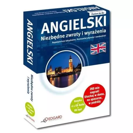 Angielski Niezbędne zwroty i wyrażenia to doskonałe repetytorium leksykalne dla osób początkujących i średnio zaawansowanych. Pakiet jest unikalnym zestawieniem zwrotów konwersacyjnych niezbędnych do swobodnego porozumiewania się po angielsku.