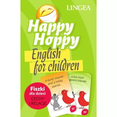 Happy Hoppy Fiszki dla dzieci. Cechy i relacje są doskonałą pomocą w nauce języka angielskiego. Kolorowe ilustracje pobudzą ciekawość najmłodszych, a starannie dobrane zwroty i wyrażenia poszerzą zasób słownictwa.