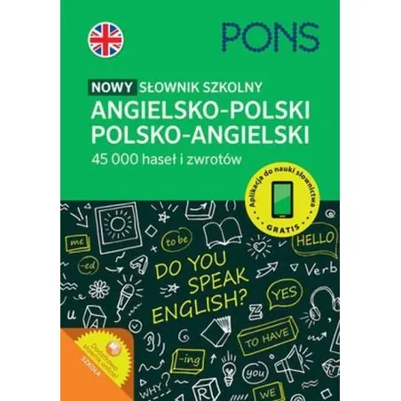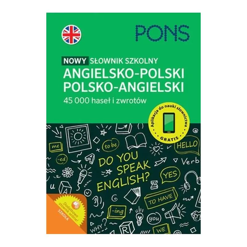 Nowy słownik szkolny angielsko-polski, polsko-angielski PONS, zawierający 45 000 haseł i zwrotów, został przygotowany z myślą o uczniach rozpoczynających naukę w szkołach wszystkich typów, w tym także dla słuchaczy kursów językowych.Baza językowa została starannie dobrana pod kątem potrzeb osób na poziomach A1-B2, uwzględniając najnowsze słownictwo, które pojawiło się w języku niemieckim.W słowniku dla rozróżnienia częstotliwości używania poszczególnych słów w codziennym języku zastosowano wyróżnienie najprzydatniejszych haseł. Dzięki temu początkujący użytkownicy słownika mogą skupić się na budowaniu znajomości podstawowego zestawu słownictwa, co ułatwia naukę języka. By ułatwić uczącym się prawidłową wymowę, część angielsko-polska słownika zawiera transkrypcję fonetyczną wyrazów hasłowych.Słownik zawiera jeszcze wiele innych udogodnień, jak choćby podawanie przykładu użycia wyrazów - zarówno w hasłach prostych, jak i złożonych, mogą zostać podane przykłady użycia wyrazów. Aby je łatwiej odnaleźć, zostały oznaczone wytłuszczonym drukiem.Do słownika dodano darmową aplikację do nauki słownictwa Fiszki PONS. Angielski 1000 słów na co dzień.