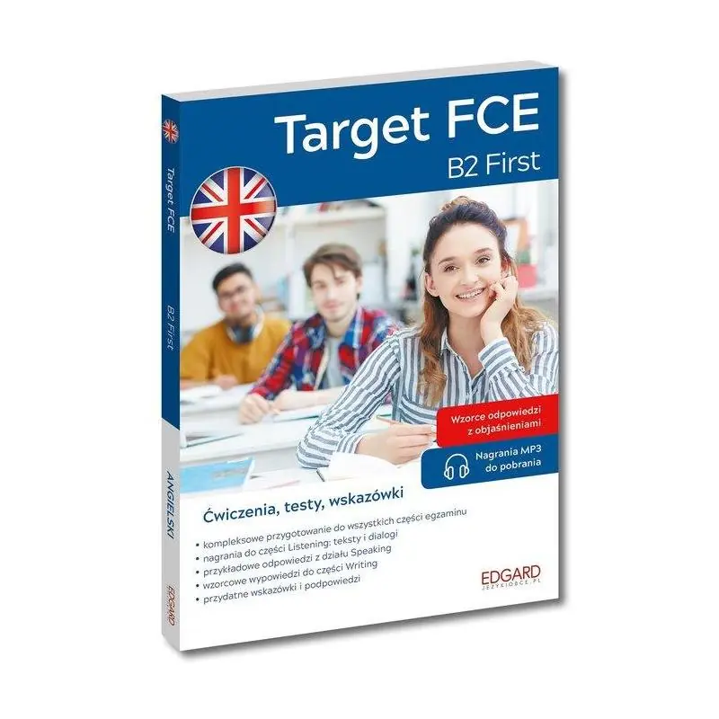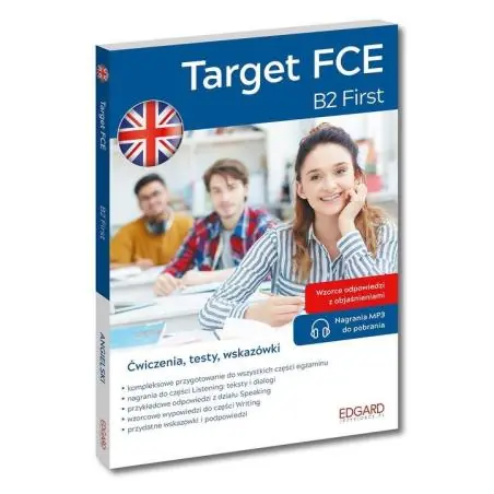 Angielski. Target FCE. B2 First. to kurs wprowadzający i systematyzujący 1100 słów i zwrotów niezbędnych do przygotowania do egzaminu First Certificate in English (B1-B2). Podręcznik składa się z 30 praktycznych rozdziałów tematycznych, m.in.: idiomów, relacji czasowych, rozmów i spotkań oraz czasowników ruchu. 130 ćwiczeń leksykalnych pozwoli poznać słownictwo w kontekście i aktywnie przygotować się do egzaminu. Dzięki opracowaniu inteligentnego klucza odpowiedzi – szczegółowo omówiono prawidłowe rozwiązanie zadań. W książce zamieszczono niezbędnik zdającego – zwroty, kolokacje, słowotwórstwo oraz testy cząstkowe i test podsumowujący oraz nagrania w formacie MP3. Angielski. Target FCE. B2 First: - aktywna rozbudowa słownictwa w różnorodnych ćwiczeniach - kompleksowe przygotowanie do egzaminu First Certificate in English (FCE) B2 First - słownictwo w kontekście - nagrania MP3 profesjonalnych lektorów - słówka, zwroty, idiomy i Phrasal Verbs - praktyczne wskazówki na temat słowotwórstwa Wydawnictwo EDGARD. Jako jeden z liderów segmentu językowego wyznaczamy trendy na rynku wydawniczym. Specjalizujemy się w publikacjach przeznaczonych do samodzielnej nauki języków obcych skierowanych do osób na każdym poziomie zaawansowania – zarówno do początkujących, jak też osób zaawansowanych, do pasjonatów i wielbicieli języków obcych. Wiemy, jak wspomagać wszechstronny rozwój i inspirować do poszukiwań nowych zainteresowań. Opieramy swoje działania o fachową wiedzę, skuteczną metodykę oraz bardzo cenne lata doświadczeń. Dzięki temu nieustannie rozwijamy i ulepszamy nasze produkty, by dostarczać coraz lepszych rozwiązań, zgodnych z potrzebami osób uczących się, ich zainteresowaniami oraz możliwościami.