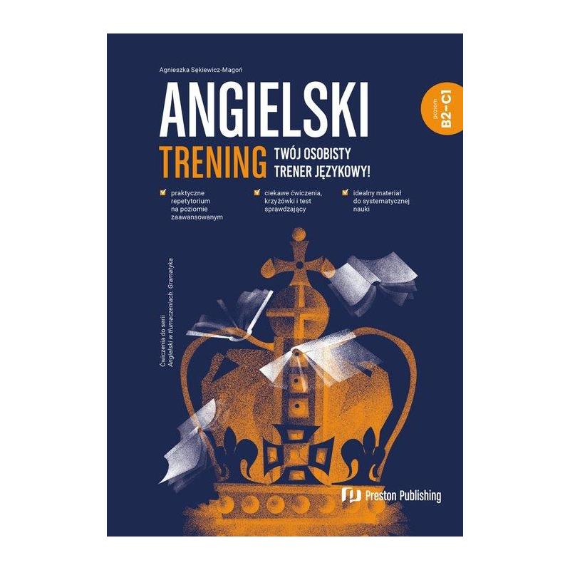 Czujesz, że czas wejść na zaawansowany poziom znajomości języka angielskiego? Masz ochotę na intensywny i efektywny trening językowy? Jeśli tak, poznaj swojego nowego trenera personalnego, który pomoże Ci wyrzeźbić gramatyczne muskuły! Angielski. Trening B2-C1 to wyjątkowa książka w formie repetytorium, dzięki której łatwo przypomnisz sobie wiedzę teoretyczną i opanujesz zagadnienia gramatyczne oraz ciekawe słownictwo. Materiał w książce jest przygotowany zgodnie z zasadami prawidłowego treningu: • zaczynamy od rozgrzewki w formie teorii z przykładami zdań, • przechodzimy do treningu właściwego, z ćwiczeniami ułożonymi od najprostszych do coraz trudniejszych, • kończymy ćwiczeniami relaksująco-utrwalającymi w formie krzyżówek językowych. Zakres materiału obejmuje m.in. zagadnienia takie jak: • wyrażenia typu: „it takes”, „find it”, „be supposed to do sth” czy „no matter what/who/when”, • powtórzenie czasowników modalnych, • powtórzenie trybów warunkowych, • zdania z „I wish/if only”, „as if/though”, „it’s time” czy „would rather”, • strona bierna z zaimkami osobowymi, • czasowniki relacjonujące w mowie zależnej, • struktura „have sth done”, • emfaza przy użyciu „do, does, did” i przysłówków oraz zdania rozszczepione, • konstrukcja „used to”, „be used to / get used to” oraz użycie „will” i „would”. Angielski. Trening B2-C1 to idealny wybór dla osoby samodzielnie uczącej się języka angielskiego, ale może również być pomocny w trakcie nauki na kursie językowym lub w szkole, zwłaszcza w przygotowaniach do matury na poziomie rozszerzonym. Krótkie i praktyczne wyjaśnienia gramatyczne pozwolą Ci przypomnieć sobie teorię dotyczącą danego zagadnienia gramatycznego, co sprawi, że wykonanie zadań będzie łatwiejsze. Klucz do zadań umożliwi Ci natomiast sprawdzenie poprawności Twoich odpowiedzi, a krzyżówki utrwalą wybrane słowa i zwroty. Zestaw ćwiczeń zawarty w książce uzupełnia piątą część bestsellerowej serii „Angielski w tłumaczeniach. Gramatyka”.
