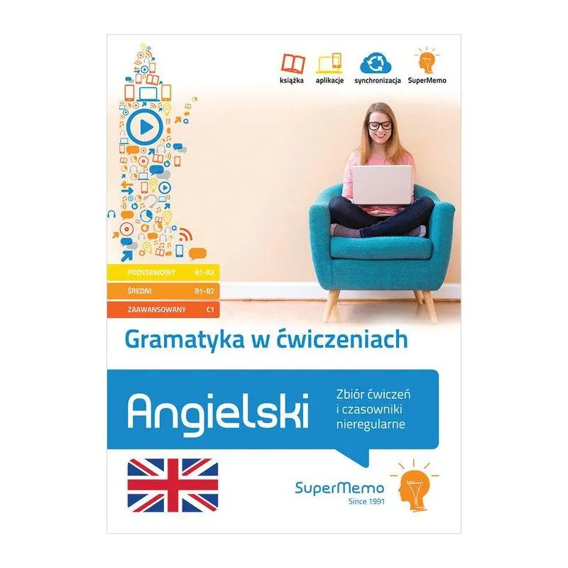 Ćwicz angielską gramatykę i czasowniki nieregularne z zestawem zadań od poziomu podstawowego (A1) do zaawansowanego (C1). Nabierzesz wprawy w różnorodnych aspektach gramatyki angielskiej – od rodzajników po czasy złożone. Gramatyka w ćwiczeniach. Angielski zapewni Ci najlepsze wsparcie podczas intensywnej i skutecznej nauki: poznasz