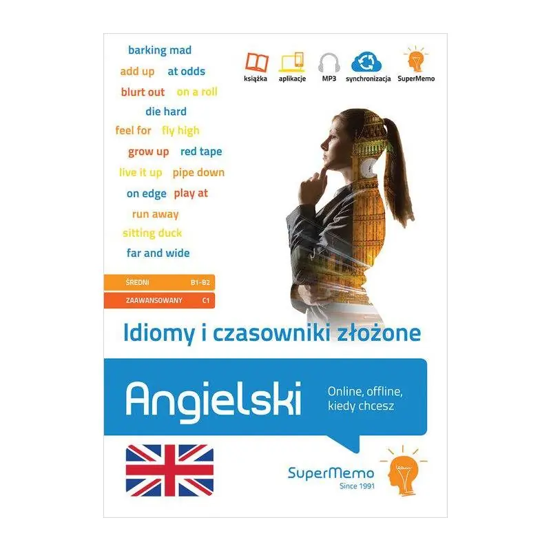 Poznaj idiomy i czasowniki złożone, a język angielski nie będzie miał przed Tobą tajemnic! Kurs Idiomy i czasowniki złożone. Angielski zapewni Ci najlepsze wsparcie podczas intensywnej i skutecznej nauki: poznasz najważniejsze wyrażenia, których nie tłumaczymy w sposób dosłowny, i zapamiętasz je na zawsze dzięki metodzie inteligentnych powtórek SuperMemo. Do Twojej dyspozycji oddajemy podręcznik do nauki idiomów i czasowników złożonych wraz z definicjami, polskimi tłumaczeniami i przykładami użycia. Treść książki uzupełniają dwa kursy multimedialne: English. Idioms oraz English. Phrasal Verbs, do nauki łącznie 3800 wyrażeń. Są one dostępne w serwisie SuperMemo.com oraz w aplikacjach SuperMemo dla systemów Android, iOS oraz Windows PC. Dodatkowe wsparcie podczas nauki otrzymasz dzięki nagraniom MP3, przeznaczonym do osłuchiwania się z wyrażeniami oraz ich wymową, np. podczas jazdy samochodem lub w trakcie różnych form aktywności fizycznej.* * Kupując książkę, otrzymujesz kod dostępu do jej rozszerzeń multimedialnych. SuperMemo.com to między innymi: + oparta o badania naukowe, wielokrotnie nagradzana metoda SuperMemo, pozwalająca zapamiętywać tysiące słów z blisko 100% skutecznością + bogaty słownik pozwalający wyszukiwać i dodawać nowe słowa do nauki + dostęp do wielu kursów językowych o różnej tematyce i poziomach zaawansowania + możliwość tworzenia własnych notatek personalizujących treść kursu + możliwość nauki online oraz w aplikacjach przygotowanych na smartfony, tablety i komputery. Uczysz się, jak i gdzie chcesz. Logujesz się na jedno konto użytkownika, wspólne dla serwisu online oraz programu i aplikacji mobilnych SuperMemo, dzięki czemu Twoje postępy w nauce są wszędzie identyczne! Wymagania sprzętowe Windows: komputer z systemem Windows® 7 SP1 PL/EN, Windows® 8 PL/EN, Windows® 10 PL/EN, 2 GB RAM, ekran 1024 x 768, 500 MB miejsca na dysku, .NET Framework v4.6. Android: smartfon lub tablet z systemem operacyjnym Android 5.0 lub nowszym (aplikacja do pobrania w sklepie Google Play). iOS: iPhone/iPad z systemem operacyjnym iOS 8 lub nowszym (aplikacja do pobrania w sklepie App Store). Do pobrania kursu i jego aktywacji wymagane jest połączenie z internetem. W trakcie rozwoju aplikacji wymagania mogą ulec zmianie. Aktualne wymagania dostępne są na stronie SuperMemo.com/apps.