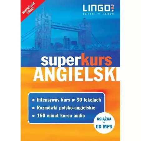 Najnowsze wydanie bestsellerowej publikacji Lingo „Angielski. Superkurs” to kompleksowe rozwiązanie dla wszystkich, którzy chcą nauczyć się języka od podstaw, a zarazem możliwie szybko móc korzystać z jego znajomości w życiu codziennym. Kurs łączy w sobie zalety intensywnego kursu, sprawdzoną w praktyce użyteczność rozmówek, oraz wygodę i mobilność kursu audio.