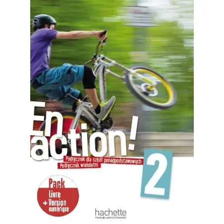 En Action! to kurs języka francuskiego dla uczniów szkół średnich, którzy rozpoczynają lub kontynuują naukę języka po 1-2 latach nauki w szkole podstawowej. Podręcznik jest zgodny z nową podstawą programową i został dopuszczony do użytku szkolnego w 4-letnim liceum i 5-letnim technikum.