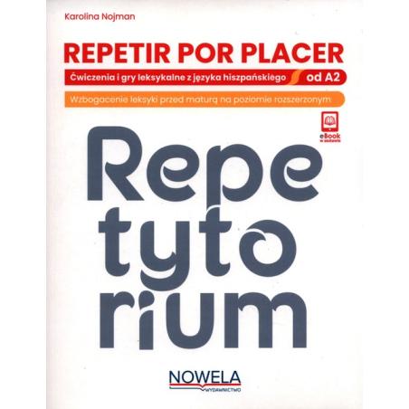 Repetytorium tematyczno-leksykalne z języka hiszpańskiego, które wzbogaci zasób leksyki, zwłaszcza przed maturą na poziomie rozszerzonym, i sprawi, że powtarzanie i poszerzanie słownictwa stanie się przyjemnością. Publikacja papierowa w komplecie z e-bookiem udostępnianym za pomocą kodu QR. Repetir por placer uczniów i studentów zachęci do samodzielnej pracy lub powtórek przed egzaminami, a dla nauczycieli i lektorów będzie atrakcyjnym materiałem na zajęcia. Tematyka 14 rozdziałów związana z podstawą programową Doskonała pomoc w przygotowaniu do egzaminu maturalnego, a także innych egzaminów językowych Urozmaicona leksyka, rzadko podawana w tradycyjnych podręcznikach. Szczególny nacisk na leksykę i frazeologię, która może prowadzić do błędów i nieporozumień w komunikacji Wiele ćwiczeń pobudzających kreatywność i wzmacniających skojarzenia Rozwiązania do ćwiczeń (na końcu podręcznika) Zestawienie hiszpańskich przysłów i ich polskich odpowiedników