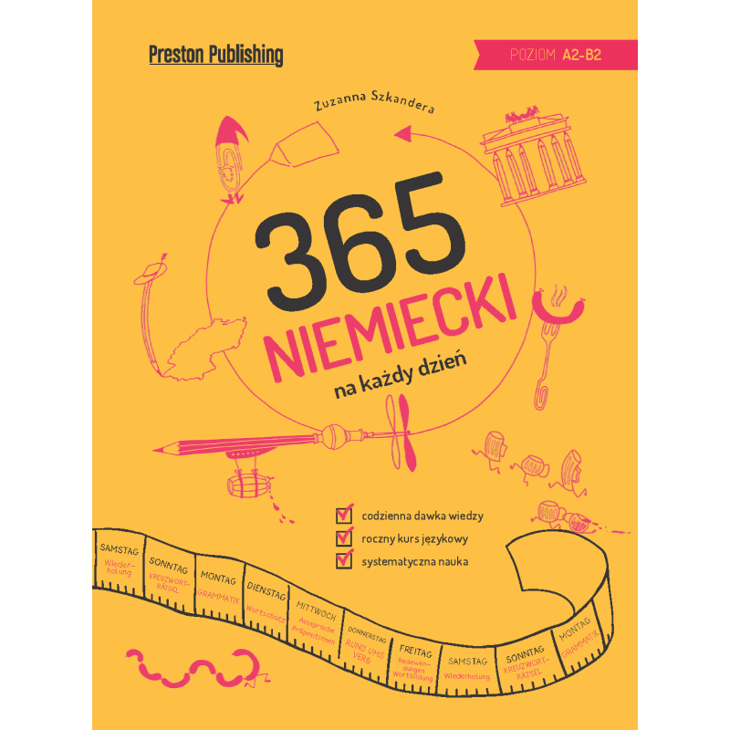 Nasz podręcznik to przemyślany roczny kurs języka niemieckiego na poziomie ponadpodstawowym i średnio zaawansowanym. Każdego dnia, krok po kroku, opanujesz najważniejsze zagadnienia z zakresu gramatyki, słownictwa, wymowy i słowotwórstwa. Poświęć tylko 20 minut na codzienną naukę – już wkrótce zauważysz, że stosowanie właściwego szyku wyrazów w zdaniu to żaden problem, a idiomy same wchodzą Ci do głowy!