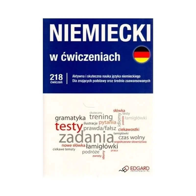 Niemiecki w ćwiczeniach to zestaw ponad 200 ćwiczeń leksykalnych wzbogacających słownictwo, sprawdzających oraz utrwalających wiedzę. W każdym rozdziale także ćwiczenia utrwalające gramatykę języka niemieckiego.Podręcznik składa się z 14 rozdziałów tematycznych systematyzujących najpopularniejsze zagadnienia: podróże, praca, rodzina, czas wolny, życie towarzyskie i inne. Ponad 30 rodzajów ćwiczeń, m.in. krzyżówki, rebusy, diagramy, tabelki czy zadania typu prawda/fałsz, zachęcają do aktywnej nauki, a językowe łamigłówki ułatwiają samodzielne sprawdzenie wiedzy. Dodatkowo na końcu książki umieszczono słownik niemiecko-polski.
