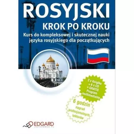 ROSYJSKI Krok po kroku: - 6 godzin wysokiej jakości nagrań - tylko rodowici Rosjanie, - 3200 niezbędnych słów i zwrotów, - współczesne dialogi i praktyczne wyrażenia z tłumaczeniami, - program multimedialny, - przystępnie objaśniona gramatyka, - ćwiczenia z odpowiedziami, - różnorodne ciekawostki.