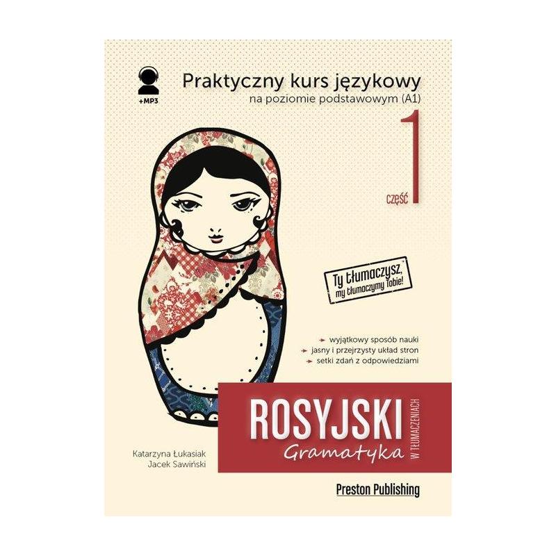 Chcesz w krótkim czasie opanować podstawy języka rosyjskiego i przełamać barierę mówienia? Swobodnie radzić sobie w sytuacjach komunikacyjnych z zachowaniem poprawności gramatycznej? Jeżeli tak, podręcznik ten jest doskonałym wyborem.Rosyjski w tłumaczeniach, gramatyka poziom 1 zawiera:setki zdań i wyrażeń przydatnych na co dzień, ułożonych według zagadnień gramatycznych, zgodnie ze stopniowaniem trudności, które logicznie łączą się ze sobą;czytelne wskazówki w języku polskim, ułatwiające zrozumienie zasad gramatycznych języka rosyjskiego;kod do pobrania ponad 4-godzinnego kursu audio, pomagającego w utrwaleniu przyswojonej wiedzy, ćwiczeniu wymowy i dobrego konstruowania zdań.To książka wymarzona dla samouków i wszystkich, którzy chcą sprawdzić swoje umiejętności językowe na poziomie podstawowym. Jest to też idealny suplement do regularnej nauki języka rosyjskiego. W prosty i jasny sposób przekazuje wiedzę na temat struktur gramatycznych i zachęca do ćwiczeń. Dzięki temu nauka języka rosyjskiego jest skuteczna i staje się czystą przyjemnością!