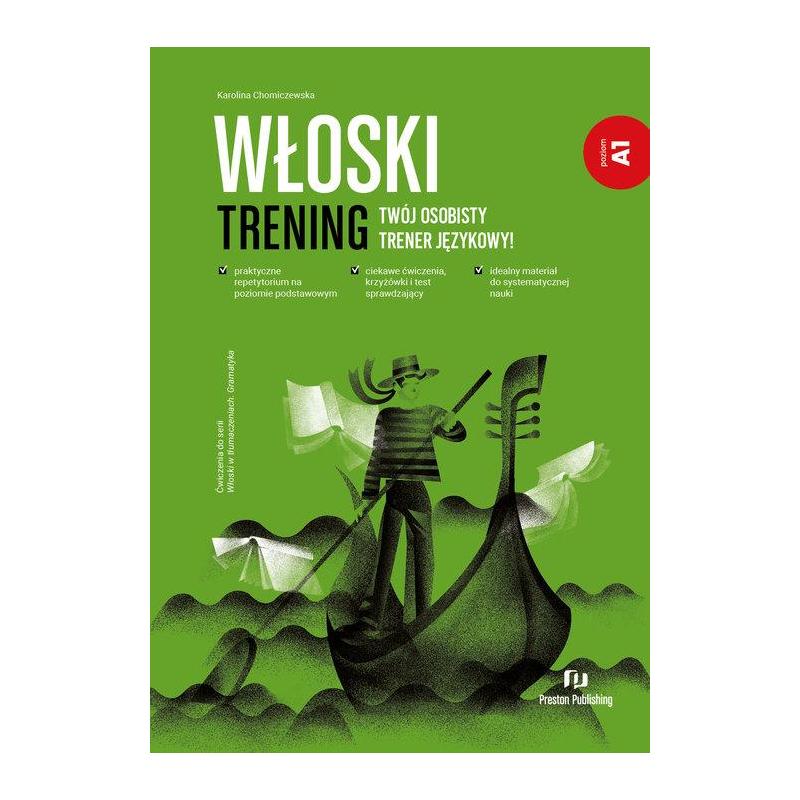 Chcesz nauczyć się języka włoskiego od podstaw? Zależy Ci na opanowaniu gramatyki oraz słownictwa na poziomie A1? Oto Twój nowy, osobisty trener językowy! „Włoski. Trening A1” to podręcznik do samodzielnej nauki na poziomie podstawowym, za pomocą którego ocenisz swoje umiejętności, zrozumiesz gramatykę i zadbasz o rozwój językowy w trzech krokach. Materiał został opracowany zgodnie z zasadami prawidłowego treningu: • Rozgrzewka: zapoznajesz się z teorią i przykładami. • Trening właściwy: wykonujesz ćwiczenia – od najprostszych do bardziej zaawansowanych. • Ćwiczenia relaksująco-utrwalające: rozwiązujesz krzyżówkę językową z użyciem słówek zawartych w poszczególnych rozdziałach. Zakres materiału obejmuje takie tematy jak: • czasowniki być i mieć, • podstawowe czasowniki regularne i nieregularne, • czasowniki zwrotne, • rodzajniki określone i nieokreślone, • przyimki oraz wyrażenia przyimkowe, • konstrukcje z czasownikiem stare, • tryb rozkazujący… …i wiele innych, równie przydatnych zagadnień. „Włoski. Trening A1” uzupełnia pierwszą część bestsellerowej serii „Włoski w tłumaczeniach. Gramatyka”. To idealny wybór dla wszystkich samouków, którzy zaczynają uczyć się języka włoskiego albo chcą przypomnieć sobie już poznane konstrukcje. Książka doskonale sprawdzi się także jako materiał do nauki w szkole lub na kursach językowych. Dzięki temu podręcznikowi: • opanujesz włoską gramatykę na poziomie podstawowym (A1), • utrwalisz swoją wiedzę i wyeliminujesz typowe błędy, • nauczysz się setek nowych słów i zwrotów, • sprawdzisz swoje umiejętności dzięki odpowiedziom do ćwiczeń.