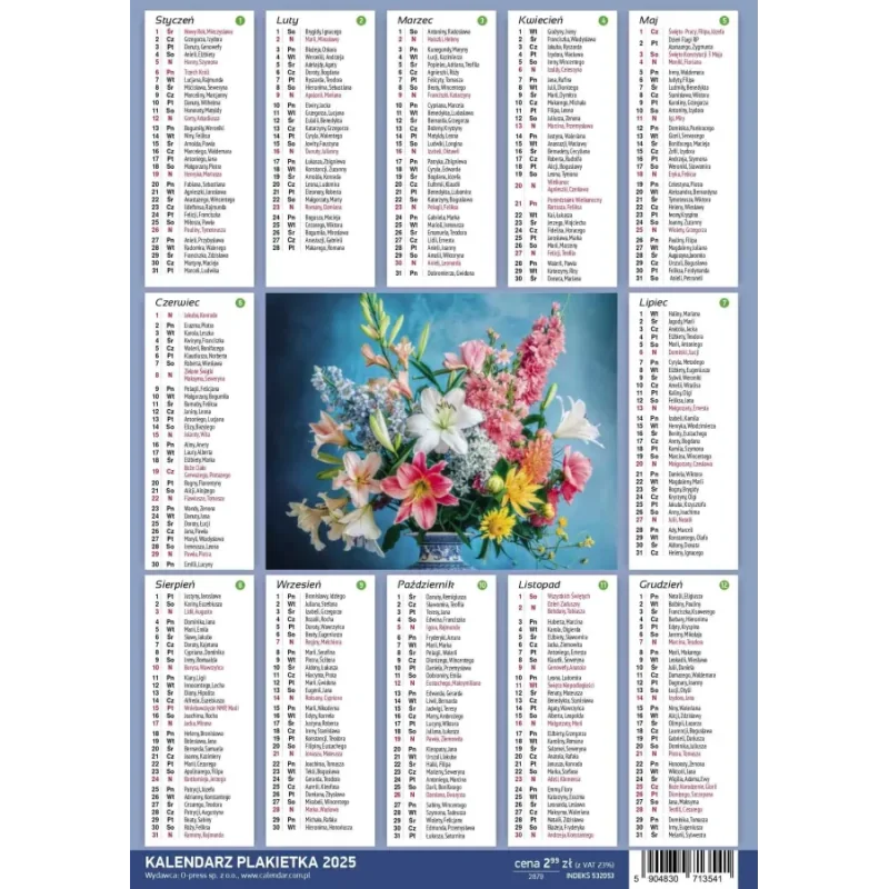 KALENDARZ A4 KWIATY PLAKIETKA 2025