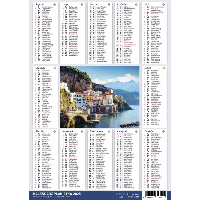 Praktyczny kalendarz Plakietka na rok 2025 w kompaktowym formacie 250x353 mm.