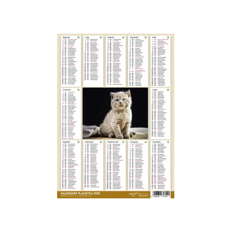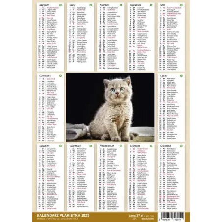 Praktyczny kalendarz Plakietka na rok 2025 w kompaktowym formacie 250x353 mm.