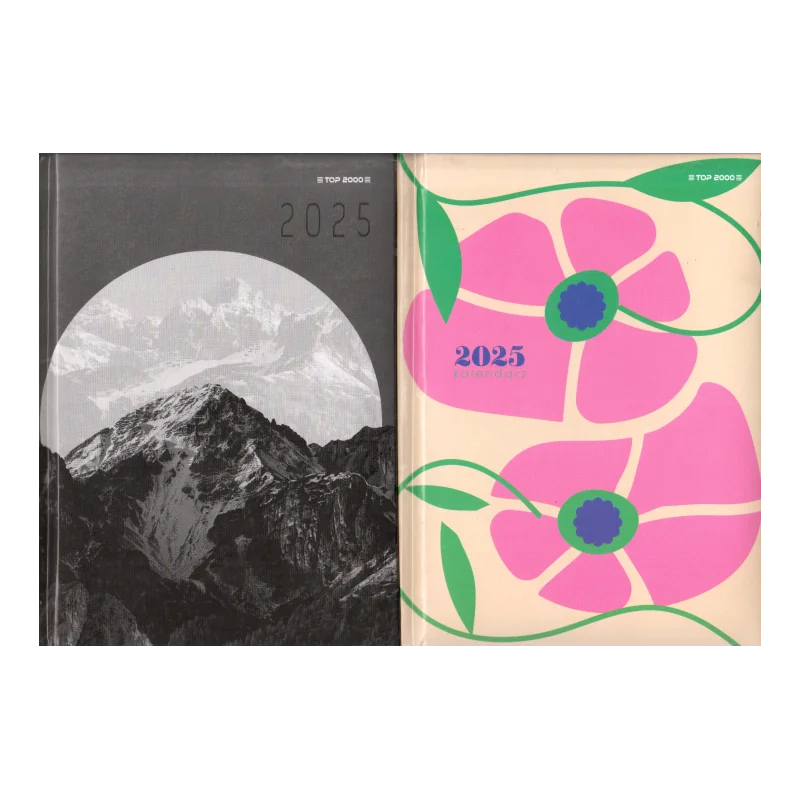 Kalendarium: 1 tydzień na dwóch stronach. Miejsce na notatki przy każdym dniu.