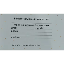 - Otwierając kopertę, odkryjesz wnętrze zaproszenia, które zachęca do podjęcia wyjątkowej decyzji – uczestnictwa w niezapomnianych obchodach osiemnastych urodzin. Wnętrze zaproszenia jest miejscem na wpisanie szczegółów imprezy, tak aby goście mogli spersonalizować swoją obecność.