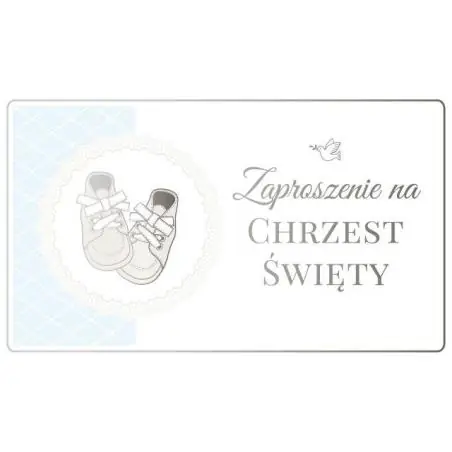 Zaproszenia przeznaczone na Chrzest Święty chłopca. Doskonałe do wręczenia rodzinie, bliskim i gościom zaproszonym na uroczystość. Sprawdzą się także w ofercie sklepów papierniczych, księgarni, hurtowni i parafii.