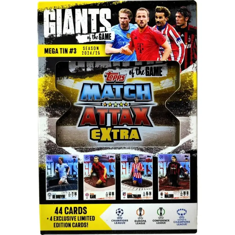 Match Attax Extra 2025 to ekscytująca kontynuacja piłkarskiej kolekcji kart, która przyciąga zarówno fanów Ligi Mistrzów, jak i zagorzałych kolekcjonerów. Edycja 2025 zawiera ponad 390 unikalnych kart z najnowszymi aktualizacjami zawodników i klubów. W Mega Puszce znajdziesz aż 48 kart, w tym cztery wyjątkowe karty specjalne „Giants of the Game” z legendarnymi piłkarzami, takimi jak Kevin De Bruyne, Harry Kane, Antoine Griezmann i Paolo Maldini.