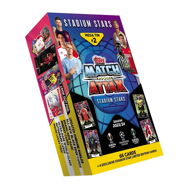 Mega Tin #2 z serii Match Attax Champions League 2023/24 to must-have dla każdego fana piłki nożnej i kolekcjonera kart, który łączy pasję do sportu z możliwością budowania własnej drużyny i rywalizacji z innymi. Limitowane karty Limited Stars zwiększają wartość i ekskluzywność zestawu.