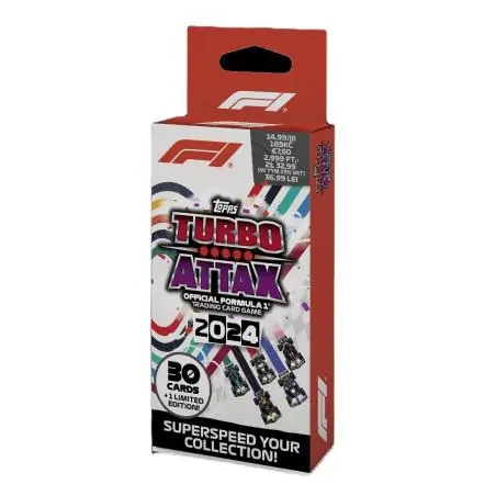 F1 Turbo Attax 2024 od Topps to oficjalna kolekcja kart Formuły 1®, powracająca w nowym sezonie pełnym emocji! W pudełku Value Box znajdziesz 31 kart, w tym jedną limitowaną kartę specjalną. Zbierz wszystkie swoje ulubione gwiazdy F1™ i odkryj nowości, które po raz pierwszy pojawiły się w historii serii Turbo Attax.