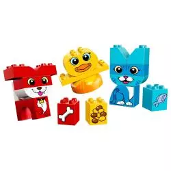 Pomóż swojemu dziecku zbudować te kolorowe, trójwymiarowe układanki z dużych klocków LEGO® DUPLO®. Przedszkolakom spodoba się sortowanie tych klocków dla maluchów w trzech kolorach i sprawdzanie, jakie zwierzątka mogą z nich zbudować. Klocki z nadrukiem ułatwią naukę mówienia i opowiadanie historyjek o tym, co każde ze zwierzątek lubi