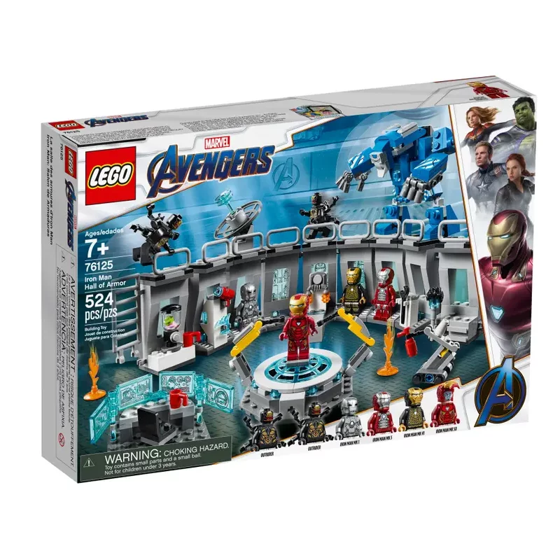 Przeprowadzaj eksperymenty z Tonym Starkiem i złap Outriderów w zestawie LEGO® Marvel Avengers 76125 Zbroje Iron Mana. Znajdziesz w nim modułowe laboratorium, które można zbudować na wiele różnych sposobów, dzięki czemu zabawa nigdy się nie kończy. W laboratorium znajduje się podest z dwoma ruchomymi, mechanicznymi ramionami, za pomocą których Tony Stark zakłada zbroje Iron Mana. Jest tu również biurko, kuchnia, schowek na broń, schowek na narzędzia, moduły do przechowywania zbroi Iron Mana, antena radaru i nie tylko. Ten wielofunkcyjny zestaw konstrukcyjny z Iron Manem zawiera też ruchomą zbroję Igor z kokpitem dla minifigurki, ruchomego robota i sześć minifigurek, w tym zbroje Iron Man MK 1, Iron Man MK 5, Iron Man MK 41 oraz Iron Man MK 50, a także twarz i włosy Tony'ego Starka, które można założyć wybranej minifigurce Iron Mana.