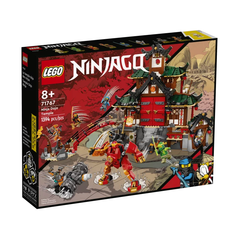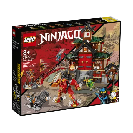 - Zestaw z dojo ninja — Trzypoziomowy model LEGO® NINJAGO® Dojo ninja w świątyni (71767) z trzema piętrami i pięcioma pomieszczeniami pozwala dzieciom szkolić ulubionych bohaterów