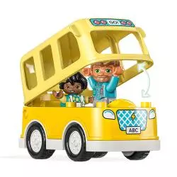 Zestawy LEGO DUPLO zawierają różnorodne postacie, dzięki czemu dzieci mogą bawić się w nawiązywanie przyjaźni. Rozwijają przy tym umiejętności motoryczne, otwierając dach szkolnego autobusu i umieszczając figurki w środku. Postacie stoją za ogrodzeniem, gdy podjeżdża autobus, co pomaga przedszkolakom nauczyć się, jak zachowywać się w ruchu ulicznym. Podobnie jak wszystkie zabawki dla maluchów LEGO DUPLO, ten zestaw zapewnia dzieciom swobodną zabawę, wyrażanie siebie i radosne odkrywanie.