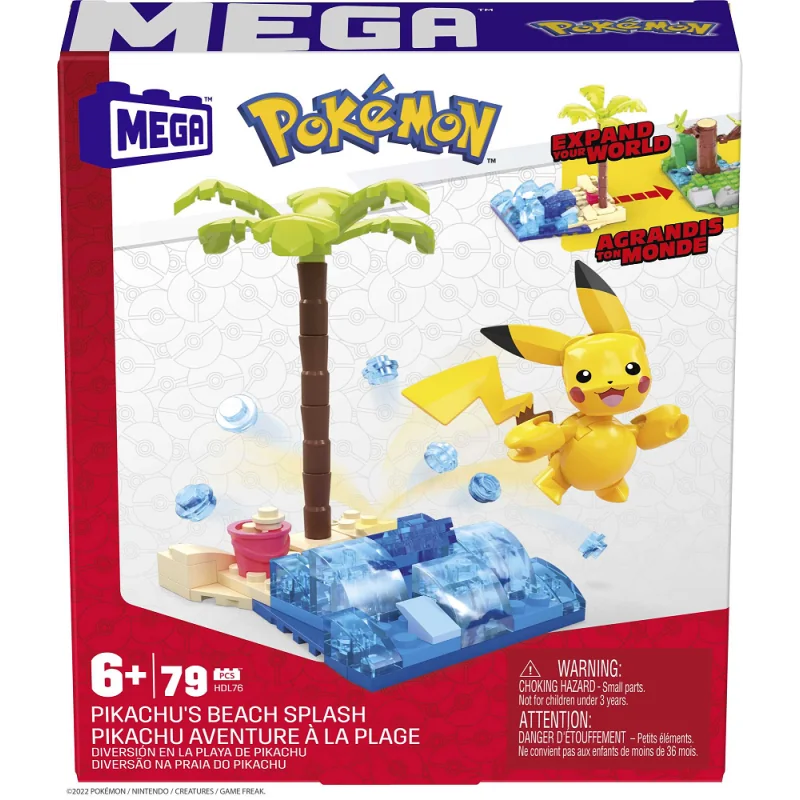 Zbuduj słoneczną plażę dla Pikachu. Zestaw ten można łączyć z innymi zestawami z serii Konstruktor przygód, aby tworzyć rozbudowany świat Pokémon pełen realistycznych szczegółów. Zbierz też zestaw Leśna zabawa Bulbasaura lub inne większe zestawy sprzedawane oddzielnie. Zabawki konstrukcyjne MEGA Pokémon zostały stworzone z myślą o