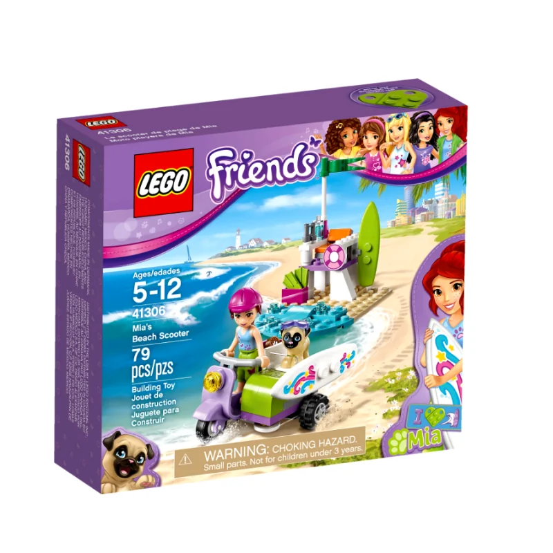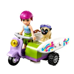 - zawartość zestawu: minilaleczka Mii oraz figurka mopsa Toffee, fioletowy plażowy skuter z przyczepką, a także fragment plaży z krzesełkiem do obserwacji