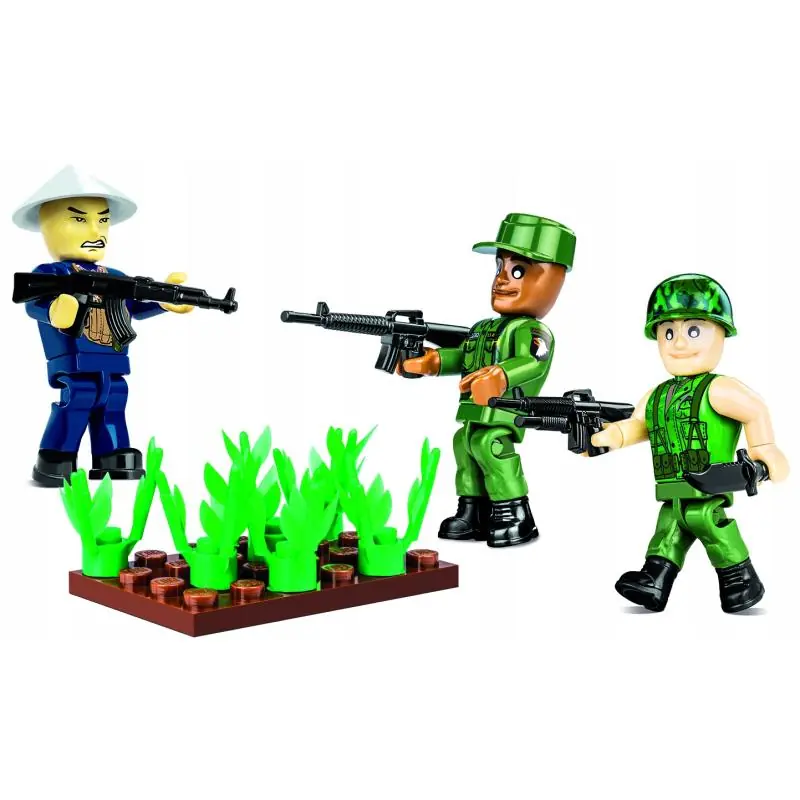 Dzięki różnorodnym zestawom z figurkami szybko zbudujesz swoją klockową armię! Kupując kilkukrotnie ten zestaw, z łatwością odtworzysz walki w Wietnamie i nie tylko. Modele i figurki z kolekcji Wojna w Wietnamie to świetne materiały na budowę scenek i dioram historycznych.