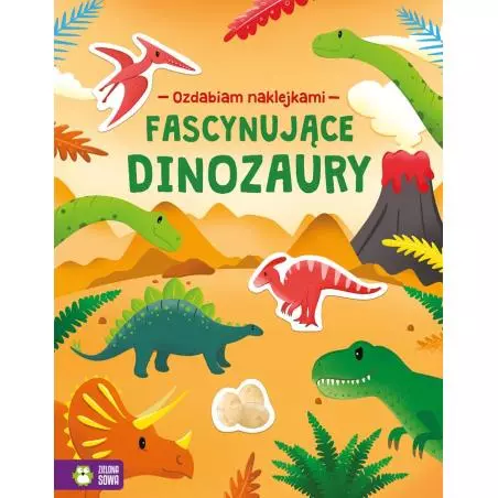 Ozdabiaj! Poznawaj! Baw się! Dzięki pięknie ilustrowanym książkom z serii „Ozdabiam naklejkami” przeniesiesz się do fascynujących miejsc, które możesz ozdobić, jak tylko zechcesz. Do wykorzystania masz mnóstwo kolorowych naklejek! Stwórz własne zachwycające kompozycje. W części „Fascynujące dinozaury” poznasz świat tych prehistorycznych gadów! Dowiesz się, kim są Ceropady, Hadrozaury czy Stegozaury. Seria „Ozdabiam naklejkami” to niesamowicie kolorowe książki z dużymi ilustracjami i mnóstwem naklejek. Na każdej stronie znajdziesz ciekawostki na dany temat. Możesz ozdabiać ilustracje naklejkami i przyklejać je w dowolnych miejscach. Strony z ciekawostkami przeplatane są zadaniami do wykonania. Ozdabiaj! Poznawaj! Baw się!