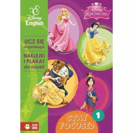 Idealnie uporządkowana książka z różnymi postaciami Disneya, prezentującymi wiedzę z języka angielskiego. Każda książka zawiera inne tematy i inne postaci. W środku znajduje się plakat edukacyjny z naklejkami i propozycje zabaw.