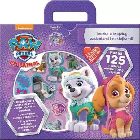 TECZKA z rączką z książką twardostronicową , w środku 3 arkusze naklejek wraz z planszą twardostronicową do naklejania naklejek.