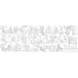 Edukacyjny arkusz XXL to ogromna powierzchnia do kolorowania kredkami, flamastrami i farbami, ale również łamigłówki i zadania ułatwiające dzieciom naukę liter, prostych matematycznych działań, angielskich słówek czy zasad działania kalendarza.