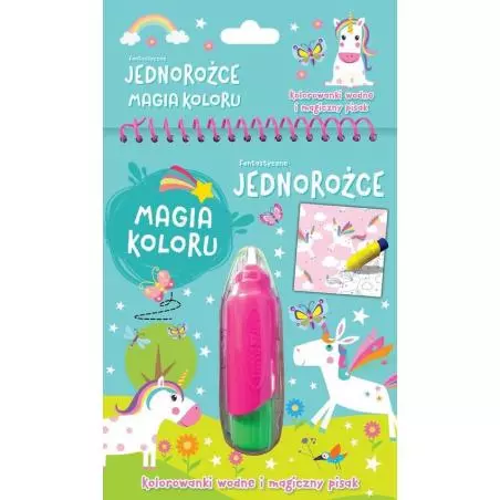 Śliczna kolorowa książka z magicznym pisakiem wodnym, dzięki któremu można wyczarować kolory na czarno-białych obrazkach.