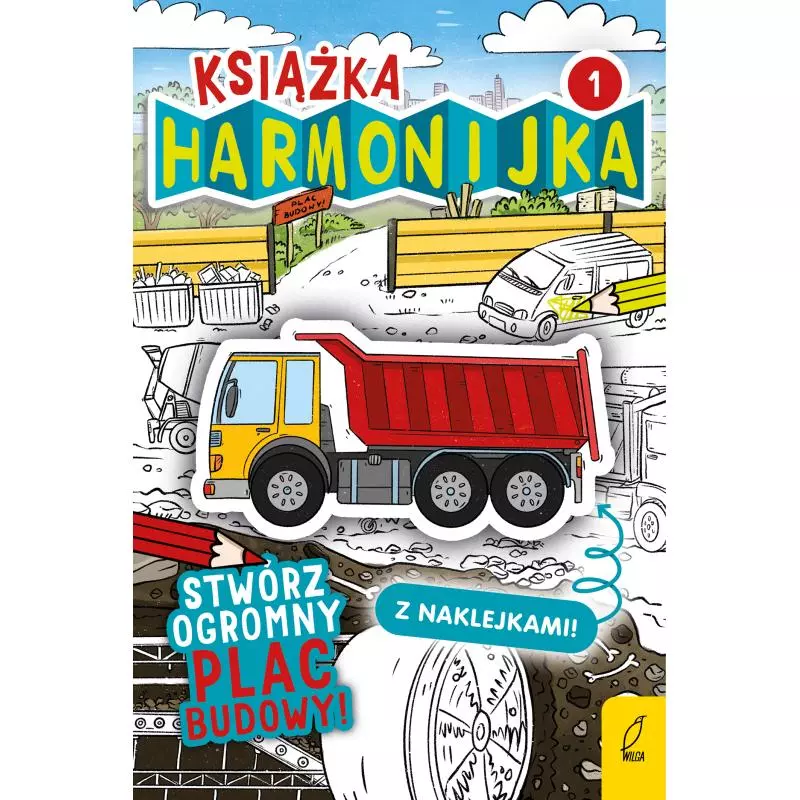 Książka harmonijka – to książka, w której każdy znajdzie coś dla siebie! W środku zawarto przeróżne elementy do kolorowania i wyszukiwania, a także naklejki przedstawiające pojazdy, robotników lub ciekawe przedmioty.