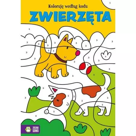 Na obrazkach ukryły się wesołe zwierzątka. Chwyć za kredki, skorzystaj z podanego kodu i odkryj je wszystkie! Książki z serii „Koloruję według kodu” to wyjątkowe kolorowanki, które dodatkowo ćwiczą spostrzegawczość. Dzieci kolorują obrazek zgodnie z kodem zapisanym kropkami, cyframi lub symbolami.