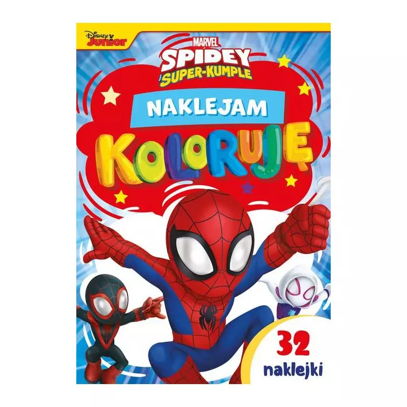 "Naklejam i koloruję" to książka z fantastycznymi naklejkami i dużymi, prostymi ilustracjami. Wklejając na stronach naklejki z odpowiednimi obrazkami, a potem kolorując rysunki według wzoru, dziecko ćwiczy spostrzegawczość oraz kształci zdolności manualne - kluczowe umiejętności dla wieku przedszkolnego. Dodatkowym atutem są ulubieni bohaterowie ze świata Marvela - Spidey i superkumple.