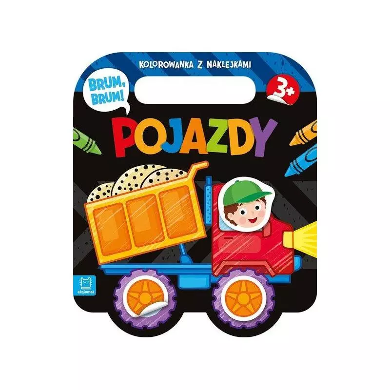 Dla dzieci, które dopiero uczą się kolorować, najbardziej odpowiednie są obrazki z grubym obrysem i małą liczbą szczegółów. Kolorowanie różnorodnych pojazdów oraz przyklejanie naklejek sprawia im wielką frajdę. Wykrojnik z rączką oraz kółkami zachęca małych fanów motoryzacji nie tylko do kolorowania, ale i do zabawy książeczką.