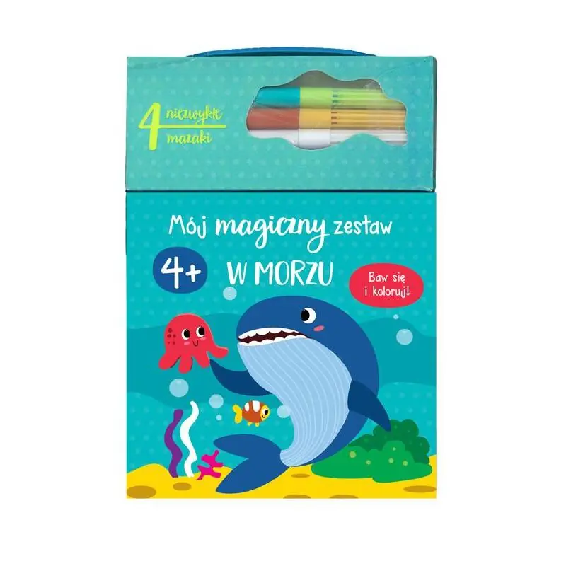 Ten wyjątkowy zestaw zadziwi Was i zachęci do zabawy! Uruchomcie wyobraźnię i ozdabiajcie strony tych uroczych kolorowanek magicznymi mazakami. Jeden z nich, biały, potrafi zmieniać kolor pozostałych… Sprawdźcie sami, jak to działa! Dzięki temu kompletowi, idealnemu dla małych artystów, w twórczy sposób rozwiniecie swoje talenty.