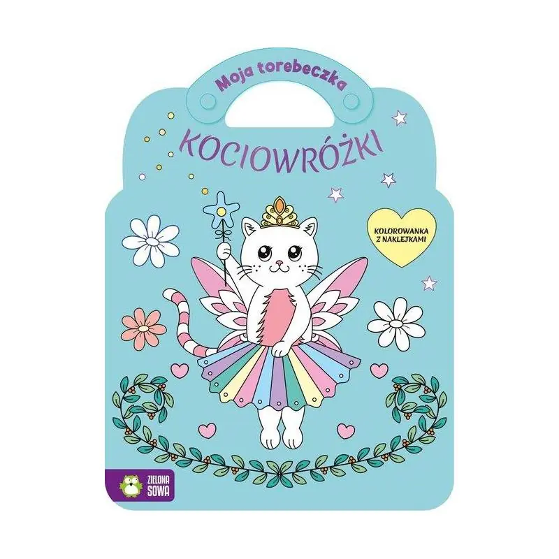 Kociowróżki to magiczne stworzenia z pięknymi skrzydłami. Potrafią wyczarować tyle wspaniałych rzeczy! Koloruj te cudowne kotki i ich mięciutkie futerka, a potem ozdabiaj strony barwnymi naklejkami! „Moja torebeczka” to seria uroczych kolorowanek w kształcie torebki. Wycięta rączka pozwoli dziecku zabrać książeczkę w dowolne miejsce i bawić się, kiedy tylko będzie miało na to ochotę. W środku mały fan kotków znajdzie naklejki, którymi ozdobi kolorowankę i nie tylko!