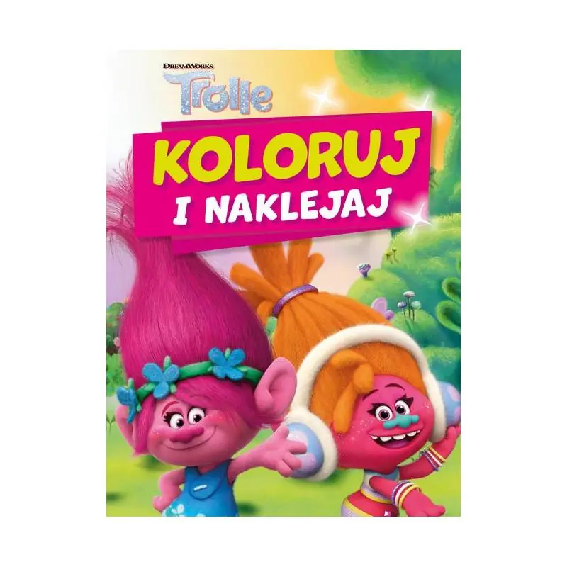 Wyrusz do świata Trolli. Ponad 20 postaci do pokolorowania, w tym zawsze radosna Poppy, Mruk, Brydzia, Król Gryzek, Gwidon Diament, a także Satyna i Szenila. W zestawie z kolorowanką naklejki z bohaterami animacji.