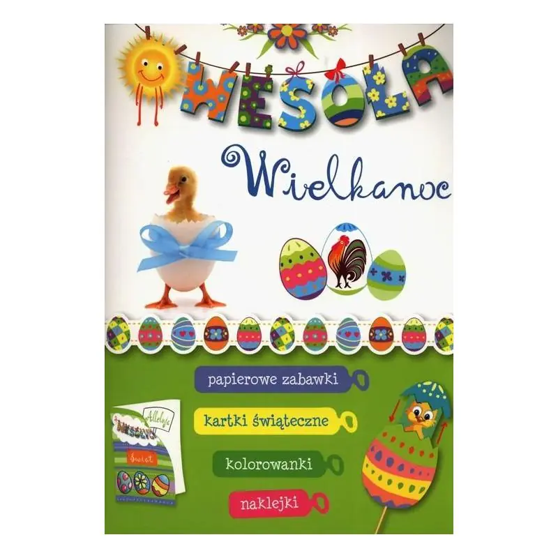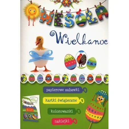 Sięgając po tę książeczkę z wycinankami, rozbudzisz u swojego dziecka artystyczne pasje. Każdy przedszkolak z zapałem przystąpi do składania wielkanocnych ozdób i dekorowania kart z życzeniami, którymi obdaruje najbliższych. Będzie mógł zrobić papierowe pisanki, ale też wielkanocnego zajączka, kolorową kurę i kurczaczka w pisance. Znajdzie także urocze naklejki do uzupełnienia stron książeczki i wykorzystania na świątecznych kartkach.