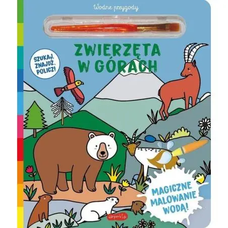 Zwierzęta w górach to kolejny, nowy tytuł w serii Wodne Przygody Akademii Mądrego Dziecka. Na kartonowych stronach książeczki zobaczymy jaka roślinność porasta zbocza gór oraz jakie zwierzęta zamieszkują tereny górskie. Zwierzęta w górach to magiczna kolorowanka, która „pokazuje” swoje kolory, gdy dziecko zanurzy pędzelek w wodzie i