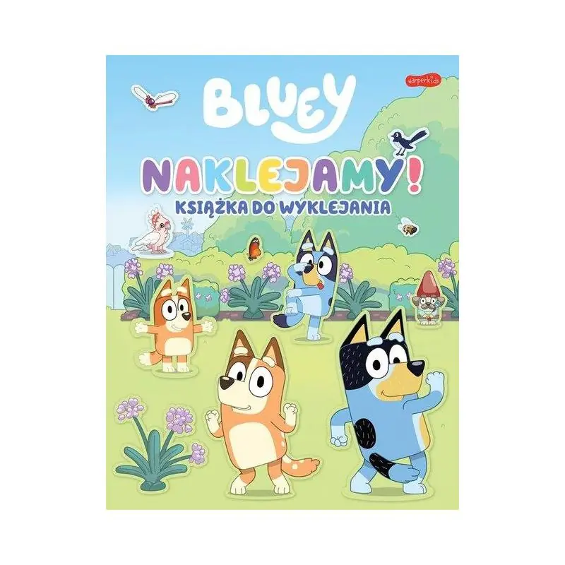 Naklejamy! W tej książeczce świat Bluey (w polskiej wersji opowieści znanej jako Blue) stoi przed tobą otworem! Naklejki wielokrotnego użytku pozwalają na dowolne uzupełnianie scen naklejkami na ponad 20 stronach. Teraz możesz samodzielnie odtworzyć ulubione zabawy bohaterów serialu, takie jak Ślub Konisiów czy Nocowanko, a także stworzyć swoje własne wersje przygód Blue, Bingo, ich rodziców i przyjaciół. A gdy coś pójdzie nie tak, albo gdy skomponowana scenka już ci się znudzi, po prostu odklej naklejki i przyklej w innym miejscu. Scenka podoba ci się tak bardzo, że nie chcesz jej rozmontować? Poproś kogoś starszego, aby sfotografował ją telefonem i wróć do zabawy! Przyklejanie i odklejanie jest łatwe, a daje frajdę nie z tej ziemi! Książka do wyklejania to nie tylko pomysł na świetną zabawę, ale i okazja do ćwiczenia sprawności manualnej małego dziecka i sposób na rozwijanie jego kreatywności. Towarzysząc maluchowi w podróży po kolejnych stronach tej książki, rodzice mogą włączyć się w zabawę, rozmawiając z dzieckiem i zachęcając je do opowieści o jego pomysłach, przygodach albo emocjach w lekki i niezobowiązujący sposób. Oprócz książki do wyklejania na rynku są już inne tytuły Bluey – w tym kartonowe książki w kształcie piesków, kolorowanka i książka z zadaniami. Serial Bluey to opowieść o przygodach psiej rodzinki z Australii. Kreskówka podbija serca widzów w każdym wieku, a zabawne powiedzonka i określenia używane przez jej bohaterów weszły już do języka zarówno młodszych, jak i starszych fanów serialu.
